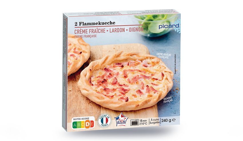Produit élaboré en France à partir de crème, farine, lardon et oignon origine France.