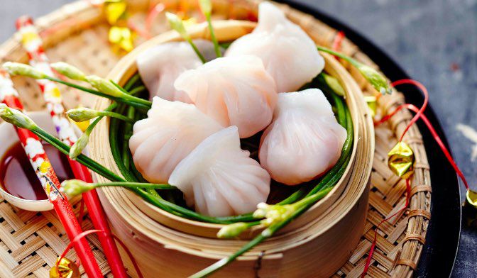 8 Hacao, bouchées aux crevettes avec sauce soja