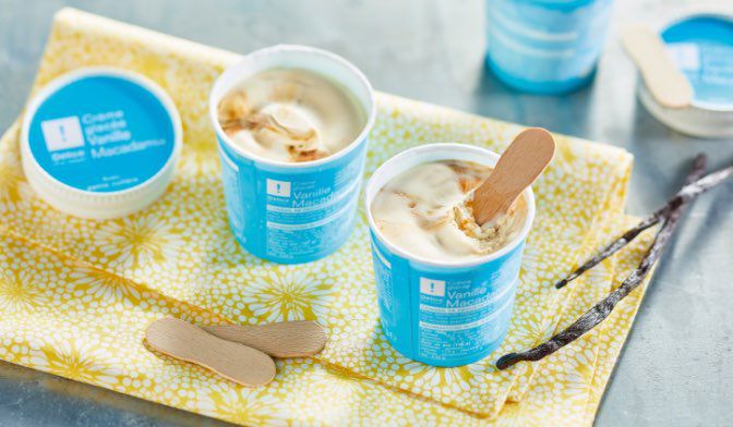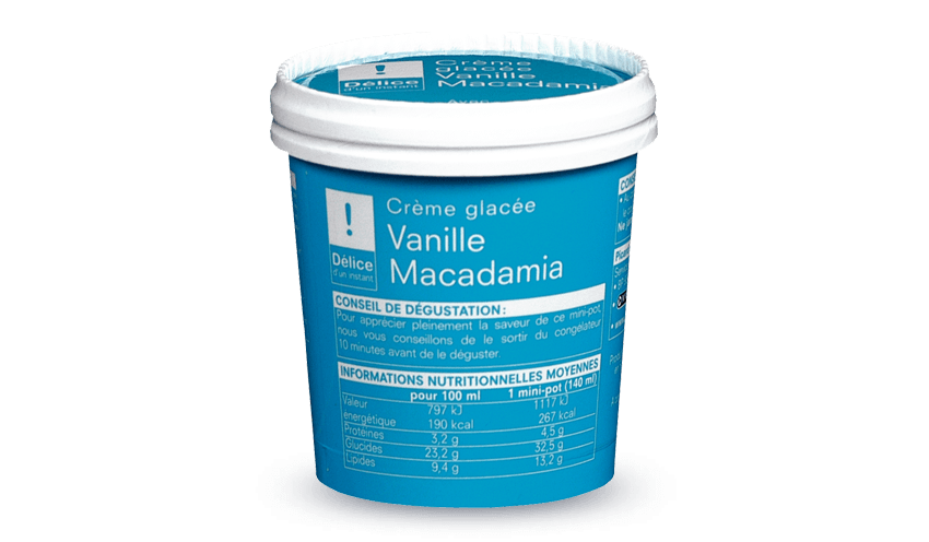 Comble de l’onctuosité, ce petit pot individuel de crème glacée à la vanille enrichie d’une sauce confiture de lait et de noix de macadamia caramélisées est un vrai délice. Avec sa petite cuillère placée sous le couvercle, on le déguste jusqu’à la dernière bouchée !