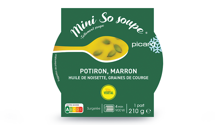Mini so soupe potiron, marron, huile de noisette, graines de courge