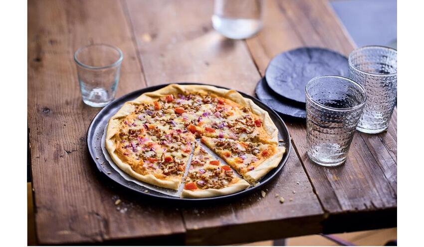 Tarte fine boeuf, cheddar