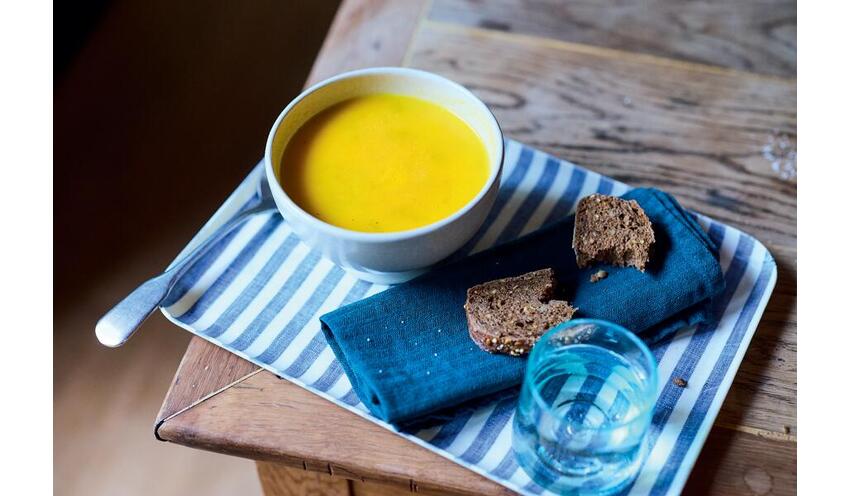 Velouté courge butternut, lentille corail, citron vert, coriandre