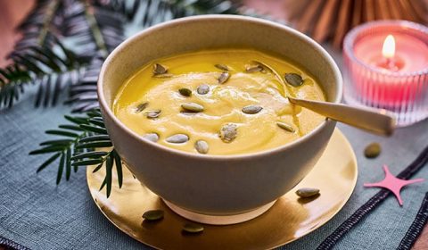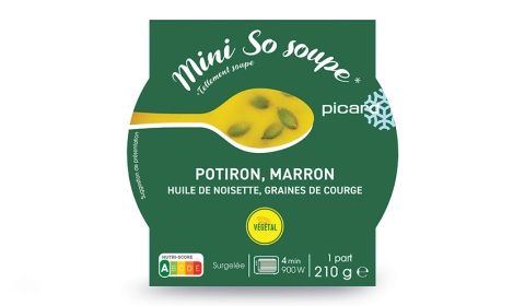 Mini so soupe potiron, marron, huile de noisette, graines de courge
